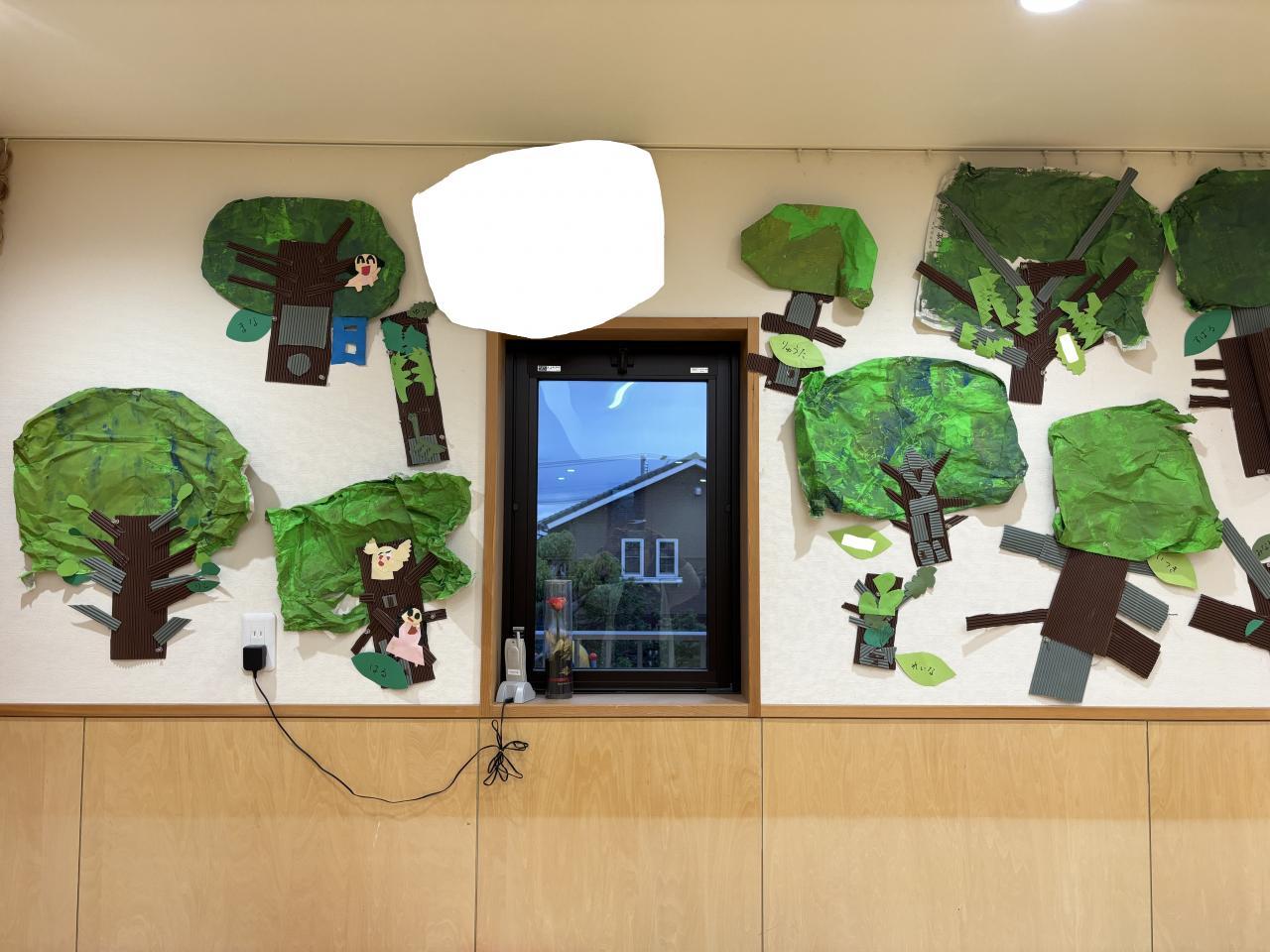 ひまわり組さん10月の壁面製作は「自分の木」です🌳