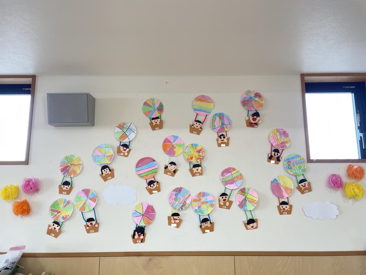 かわいい気球がたくさん飛んでいるもも組さんのお部屋😄
