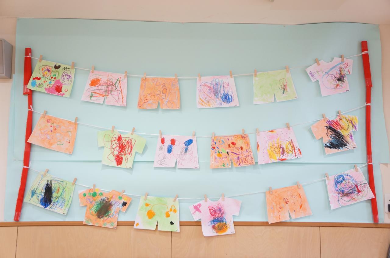 🖌パンツやシャツにクレヨンで模様を描きました。🖍