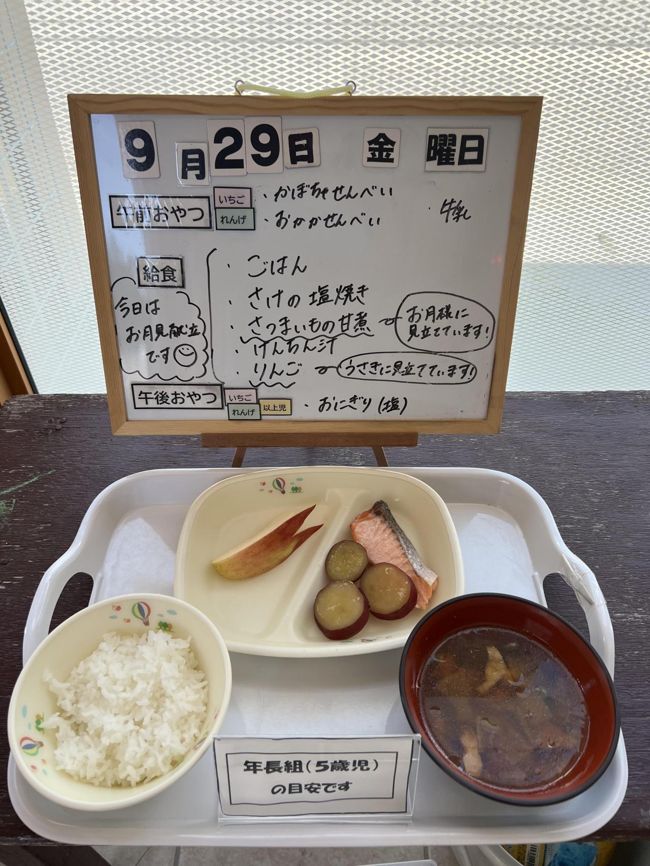 また、さつま芋の甘煮は満月に見立て、りんごはうさぎに見立てました♪